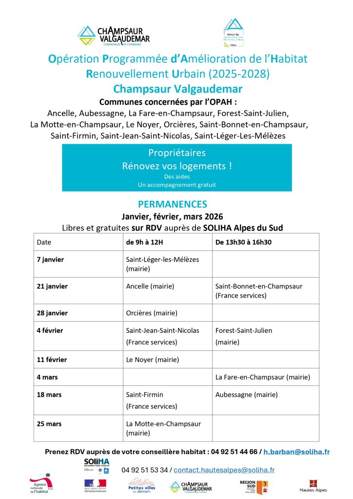 Permanences de SOLIHA dans le cadre de l’OPAH Champsaur-Valgaudemar